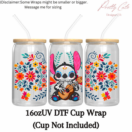 UV DTF Dia De Los Muertos Libbey Wrap (Physical Product)No heat needed|Libbey Cups|Ready to ship|Easy to apply|Small business or Personaluse