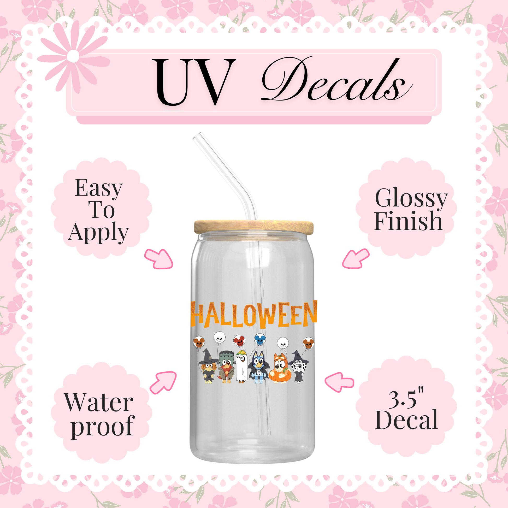 Measurements are 3.5” inches Introducing our latest innovation, the UV-DTF DECALS for 16 oz cups. This high-quality printing solution guarantees vibrant and eye-catching colors that are sure to impress. The best part? No heat is needed during the application process, making it a hassle-free and efficient option. Our UV-DTF is not only permanent and waterproof, but it is also incredibly easy to apply. Whether you're looking to start your own business or simply add a unique touch to your existing products, our UV-DTF is perfect for you. Wholesale options are available, making it an ideal choice for bulk orders. Detailed instructions are provided to ensure a seamless application process. However, please note that we are not responsible for any misuse of the product. If you have any questions or need assistance with the application, please don't hesitate to reach out to our dedicated support team. All sales are final, so make sure to make the most of this incredible offering today!