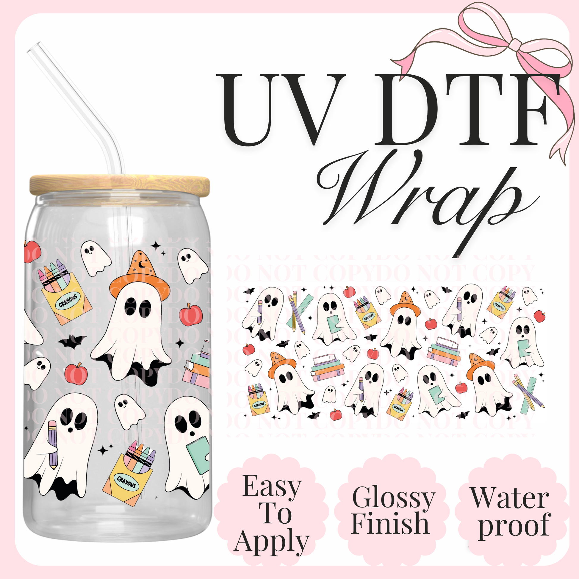Measurements are 9.4 by 4.1” inches Introducing our latest innovation, the UV-DTF for 16 oz cups. This high-quality printing solution guarantees vibrant and eye-catching colors that are sure to impress. The best part? No heat is needed during the application process, making it a hassle-free and efficient option. Our UV-DTF is not only permanent and waterproof, but it is also incredibly easy to apply. Whether you're looking to start your own business or simply add a unique touch to your existing products, our UV-DTF is perfect for you. Wholesale options are available, making it an ideal choice for bulk orders. Detailed instructions are provided to ensure a seamless application process. However, please note that we are not responsible for any misuse of the product. If you have any questions or need assistance with the application, please don't hesitate to reach out to our dedicated support team. All sales are final, so make sure to make the most of this incredible offering today!