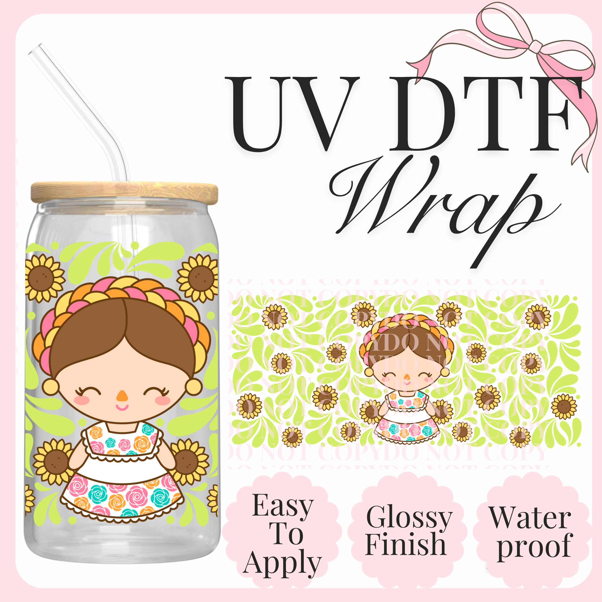 This wrap is ready to ship. Ships within 1-2 business days. FOR FASTER PROCESSING ONLY CHOOSE FROM OUR READY TO SHIP WRAP SECTION. Measurements are 9.4 by 4.1” inches Introducing our latest innovation, the UV-DTF for 16 oz cups. This high-quality printing solution guarantees vibrant and eye-catching colors that are sure to impress. The best part? No heat is needed during the application process, making it a hassle-free and efficient option. Our UV-DTF is not only permanent and waterproof, but it is also incredibly easy to apply. Whether you're looking to start your own business or simply add a unique touch to your existing products, our UV-DTF is perfect for you. Wholesale options are available, making it an ideal choice for bulk orders. Detailed instructions are provided to ensure a seamless application process. However, please note that we are not responsible for any misuse of the product. If you have any questions or need assistance with the application, please don't hesitate to reach out to our dedicated support team. All sales are final, so make sure to make the most of this incredible offering today!