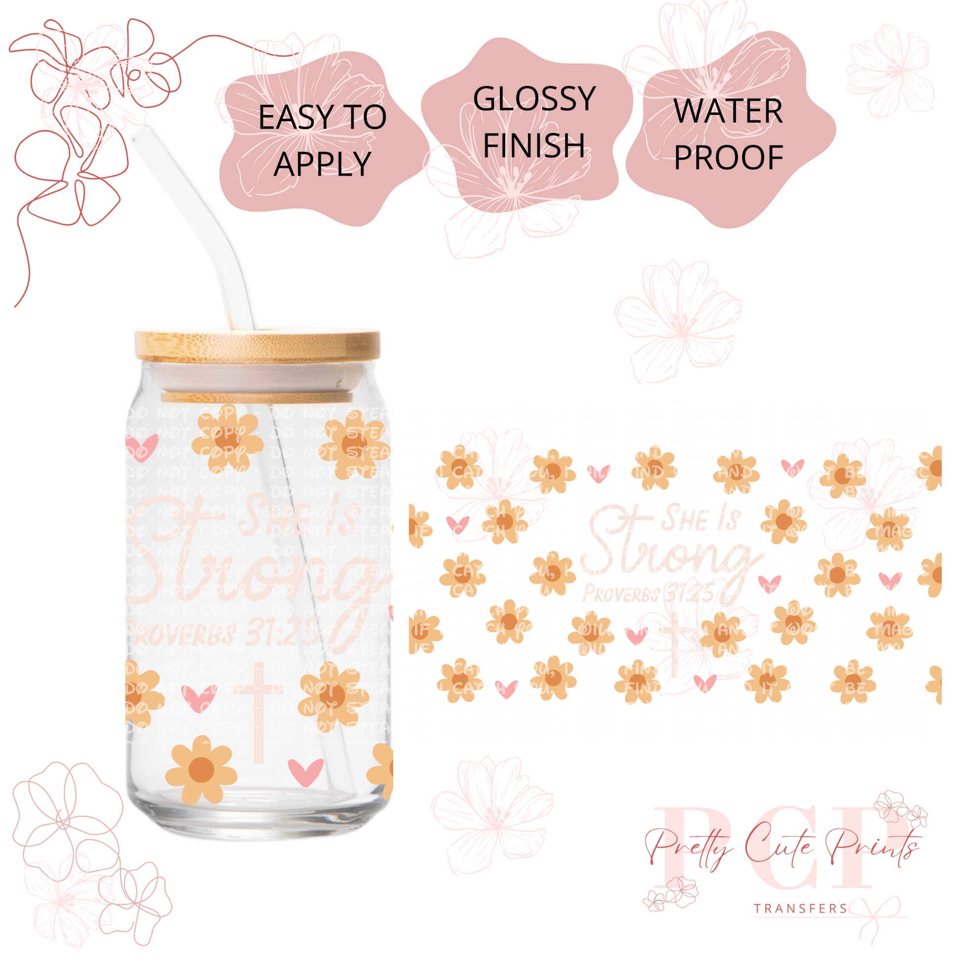 Measurements are 9.5 by 4.25” inches Introducing our latest innovation, the UV-DTF for 16 oz cups. This high-quality printing solution guarantees vibrant and eye-catching colors that are sure to impress. The best part? No heat is needed during the application process, making it a hassle-free and efficient option. Our UV-DTF is not only permanent and waterproof, but it is also incredibly easy to apply. Whether you're looking to start your own business or simply add a unique touch to your existing products, our UV-DTF is perfect for you. Wholesale options are available, making it an ideal choice for bulk orders. Detailed instructions are provided to ensure a seamless application process. However, please note that we are not responsible for any misuse of the product. If you have any questions or need assistance with the application, please don't hesitate to reach out to our dedicated support team. All sales are final, so make sure to make the most of this incredible offering today!