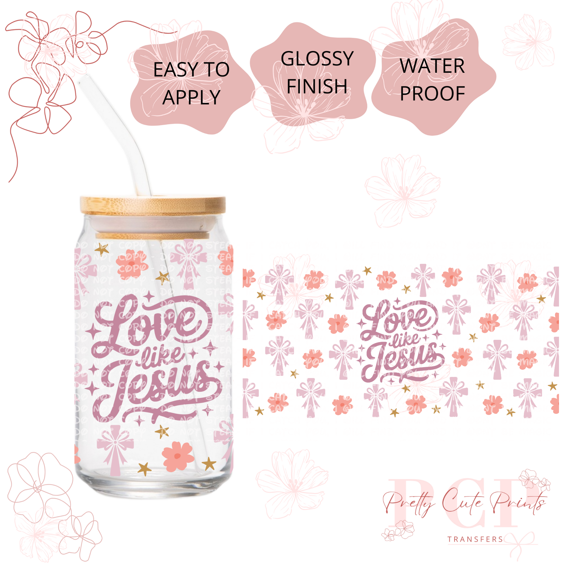 Measurements are 9.5 by 4.25” inches Introducing our latest innovation, the UV-DTF for 16 oz cups. This high-quality printing solution guarantees vibrant and eye-catching colors that are sure to impress. The best part? No heat is needed during the application process, making it a hassle-free and efficient option. Our UV-DTF is not only permanent and waterproof, but it is also incredibly easy to apply. Whether you're looking to start your own business or simply add a unique touch to your existing products, our UV-DTF is perfect for you. Wholesale options are available, making it an ideal choice for bulk orders. Detailed instructions are provided to ensure a seamless application process. However, please note that we are not responsible for any misuse of the product. If you have any questions or need assistance with the application, please don't hesitate to reach out to our dedicated support team. All sales are final, so make sure to make the most of this incredible offering today!