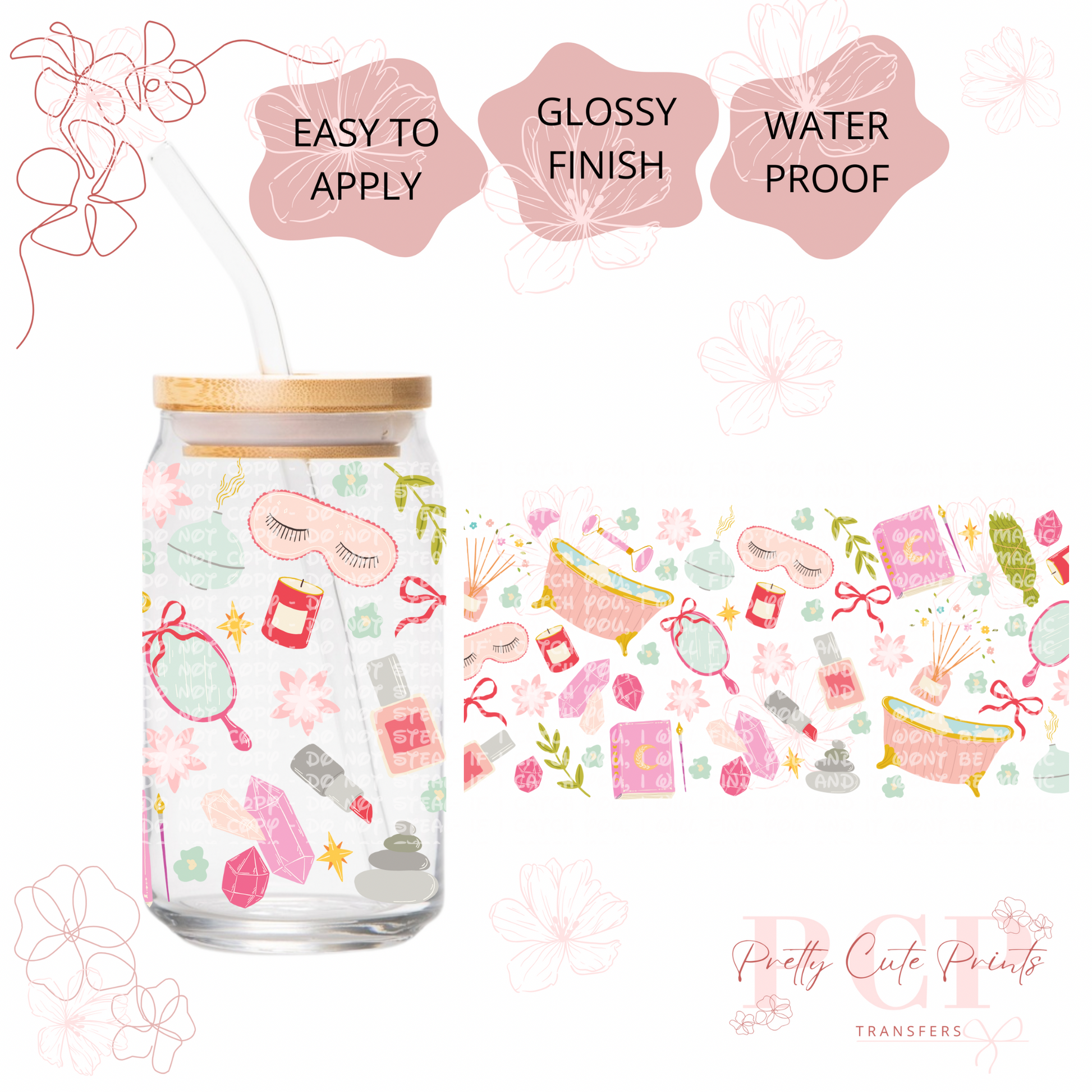 Measurements are 9.5 by 4.25” inches Introducing our latest innovation, the UV-DTF for 16 oz cups. This high-quality printing solution guarantees vibrant and eye-catching colors that are sure to impress. The best part? No heat is needed during the application process, making it a hassle-free and efficient option. Our UV-DTF is not only permanent and waterproof, but it is also incredibly easy to apply. Whether you're looking to start your own business or simply add a unique touch to your existing products, our UV-DTF is perfect for you. Wholesale options are available, making it an ideal choice for bulk orders. Detailed instructions are provided to ensure a seamless application process. However, please note that we are not responsible for any misuse of the product. If you have any questions or need assistance with the application, please don't hesitate to reach out to our dedicated support team. All sales are final, so make sure to make the most of this incredible offering today!