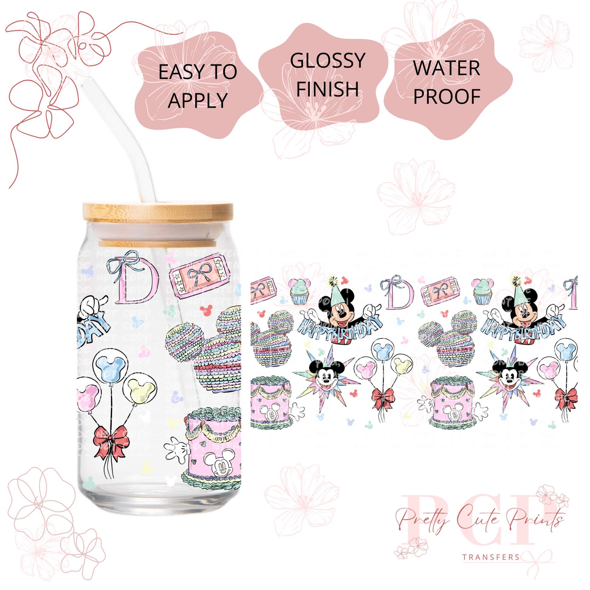 Measurements are 9.5 by 4.25” inches Introducing our latest innovation, the UV-DTF for 16 oz cups. This high-quality printing solution guarantees vibrant and eye-catching colors that are sure to impress. The best part? No heat is needed during the application process, making it a hassle-free and efficient option. Our UV-DTF is not only permanent and waterproof, but it is also incredibly easy to apply. Whether you're looking to start your own business or simply add a unique touch to your existing products, our UV-DTF is perfect for you. Wholesale options are available, making it an ideal choice for bulk orders. Detailed instructions are provided to ensure a seamless application process. However, please note that we are not responsible for any misuse of the product. If you have any questions or need assistance with the application, please don't hesitate to reach out to our dedicated support team. All sales are final, so make sure to make the most of this incredible offering today!