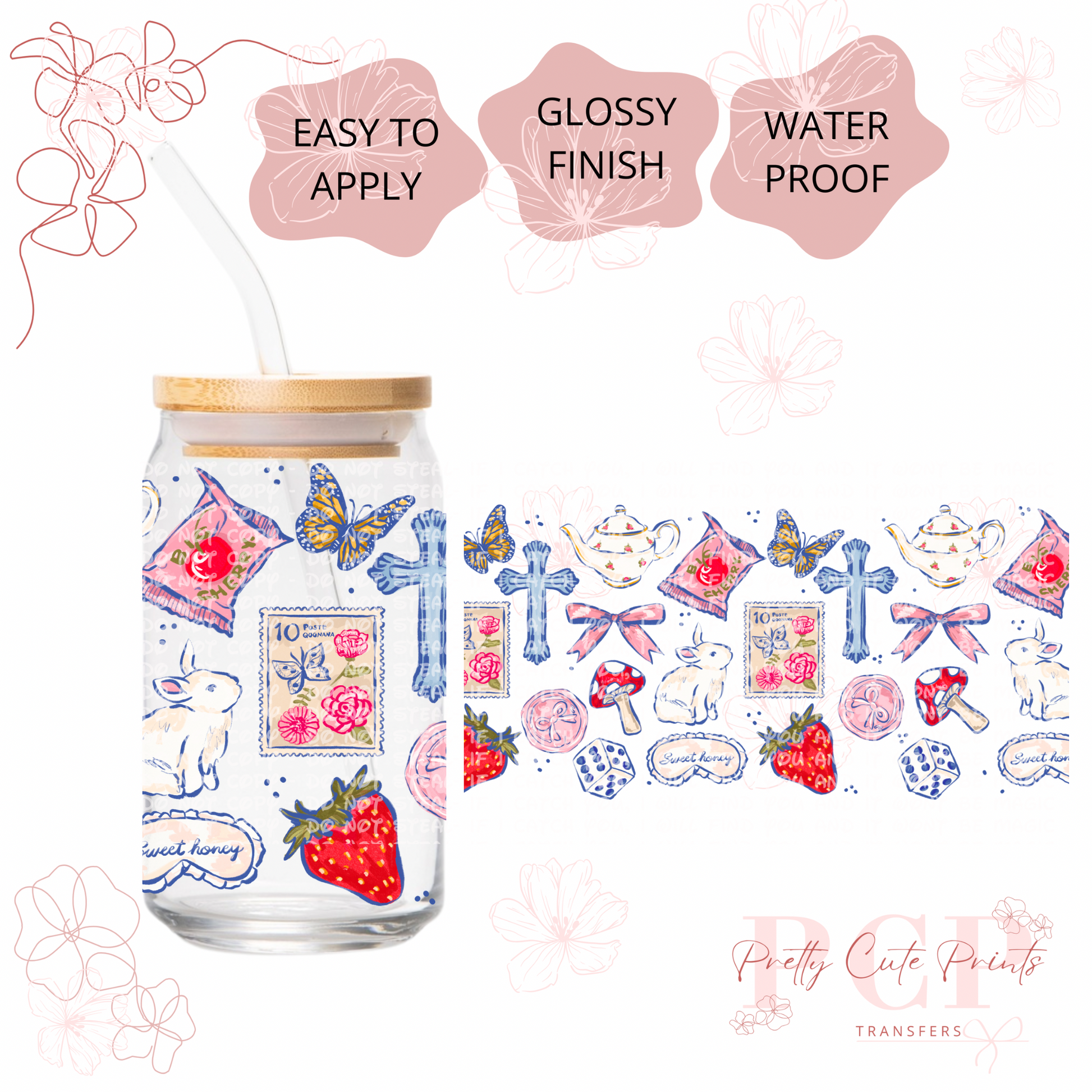 Measurements are 9.5 by 4.25” inches Introducing our latest innovation, the UV-DTF for 16 oz cups. This high-quality printing solution guarantees vibrant and eye-catching colors that are sure to impress. The best part? No heat is needed during the application process, making it a hassle-free and efficient option. Our UV-DTF is not only permanent and waterproof, but it is also incredibly easy to apply. Whether you're looking to start your own business or simply add a unique touch to your existing products, our UV-DTF is perfect for you. Wholesale options are available, making it an ideal choice for bulk orders. Detailed instructions are provided to ensure a seamless application process. However, please note that we are not responsible for any misuse of the product. If you have any questions or need assistance with the application, please don't hesitate to reach out to our dedicated support team. All sales are final, so make sure to make the most of this incredible offering today!