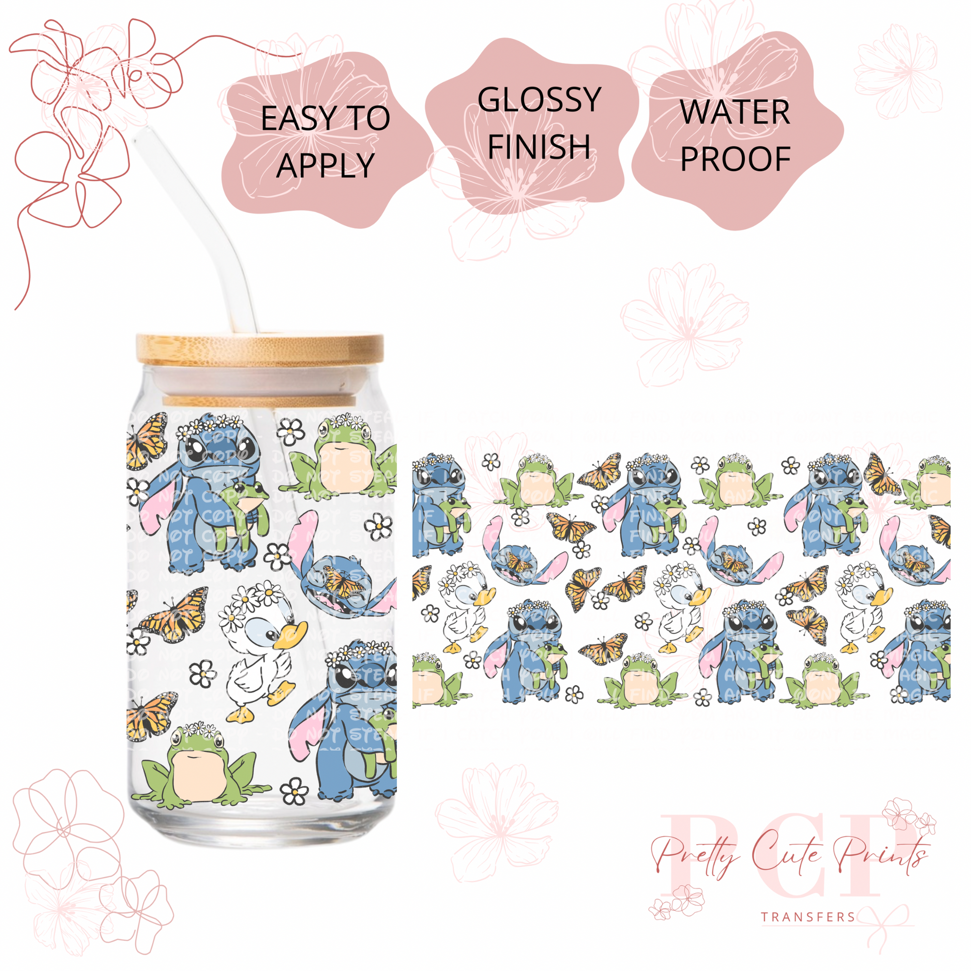 Measurements are 9.5 by 4.25” inches Introducing our latest innovation, the UV-DTF for 16 oz cups. This high-quality printing solution guarantees vibrant and eye-catching colors that are sure to impress. The best part? No heat is needed during the application process, making it a hassle-free and efficient option. Our UV-DTF is not only permanent and waterproof, but it is also incredibly easy to apply. Whether you're looking to start your own business or simply add a unique touch to your existing products, our UV-DTF is perfect for you. Wholesale options are available, making it an ideal choice for bulk orders. Detailed instructions are provided to ensure a seamless application process. However, please note that we are not responsible for any misuse of the product. If you have any questions or need assistance with the application, please don't hesitate to reach out to our dedicated support team. All sales are final, so make sure to make the most of this incredible offering today!