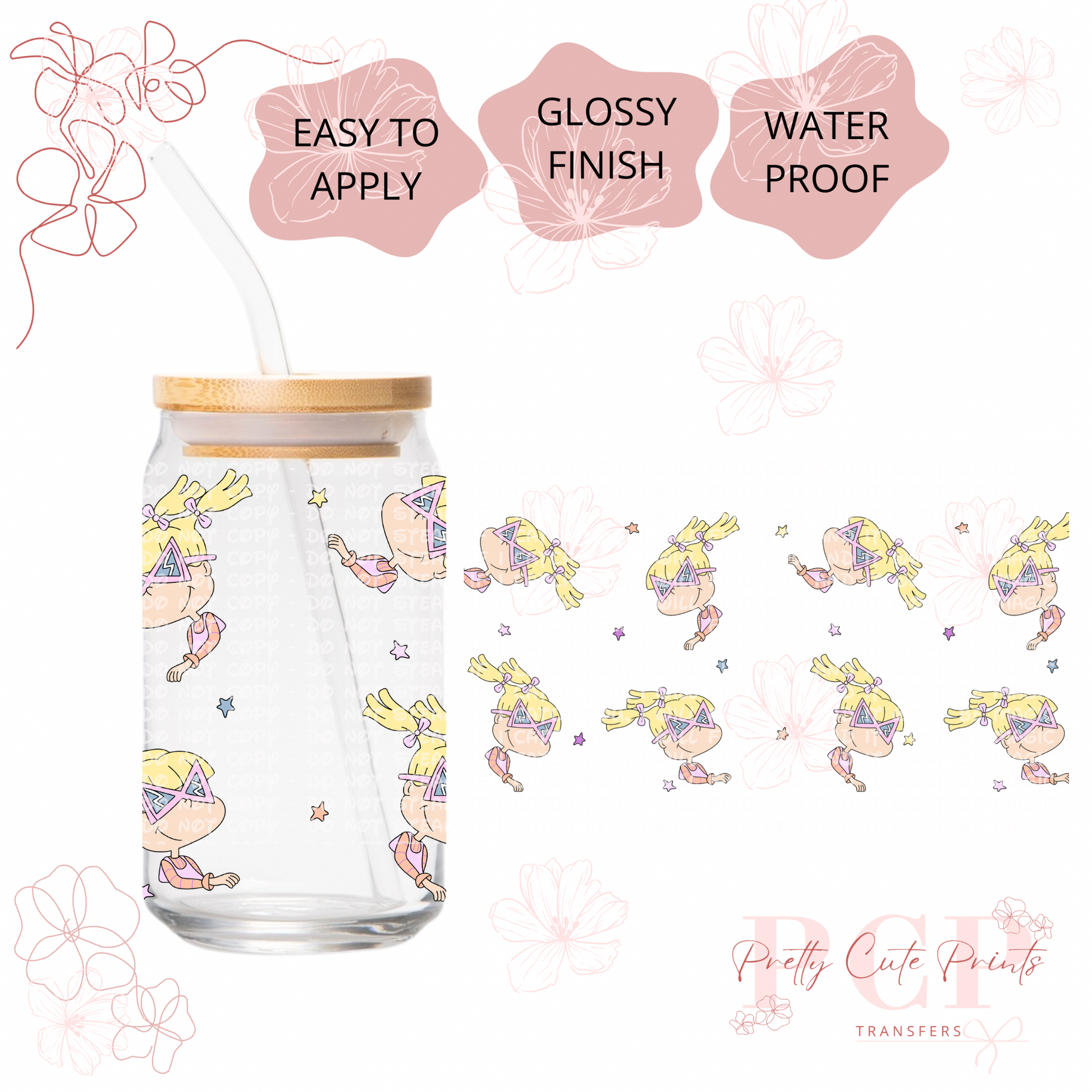 Measurements are 9.5 by 4.25” inches Introducing our latest innovation, the UV-DTF for 16 oz cups. This high-quality printing solution guarantees vibrant and eye-catching colors that are sure to impress. The best part? No heat is needed during the application process, making it a hassle-free and efficient option. Our UV-DTF is not only permanent and waterproof, but it is also incredibly easy to apply. Whether you're looking to start your own business or simply add a unique touch to your existing products, our UV-DTF is perfect for you. Wholesale options are available, making it an ideal choice for bulk orders. Detailed instructions are provided to ensure a seamless application process. However, please note that we are not responsible for any misuse of the product. If you have any questions or need assistance with the application, please don't hesitate to reach out to our dedicated support team. All sales are final, so make sure to make the most of this incredible offering today!