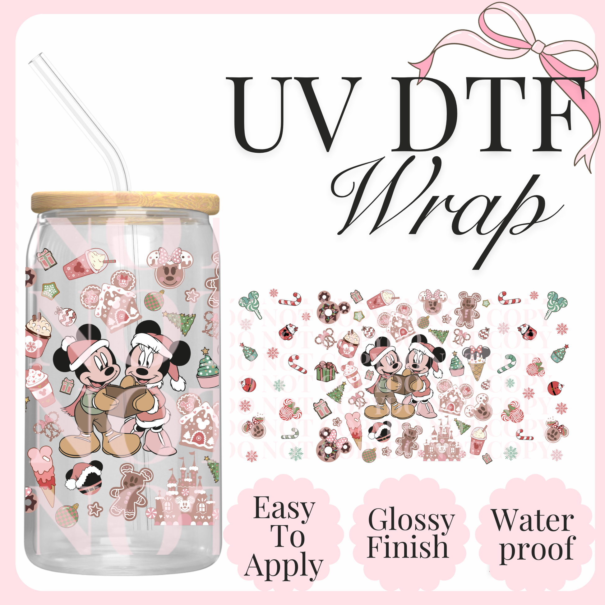 Measurements are 9.4 by 4.1” inches Introducing our latest innovation, the UV-DTF for 16 oz cups. This high-quality printing solution guarantees vibrant and eye-catching colors that are sure to impress. The best part? No heat is needed during the application process, making it a hassle-free and efficient option. Our UV-DTF is not only permanent and waterproof, but it is also incredibly easy to apply. Whether you're looking to start your own business or simply add a unique touch to your existing products, our UV-DTF is perfect for you. Wholesale options are available, making it an ideal choice for bulk orders. Detailed instructions are provided to ensure a seamless application process. However, please note that we are not responsible for any misuse of the product. If you have any questions or need assistance with the application, please don't hesitate to reach out to our dedicated support team. All sales are final, so make sure to make the most of this incredible offering today!