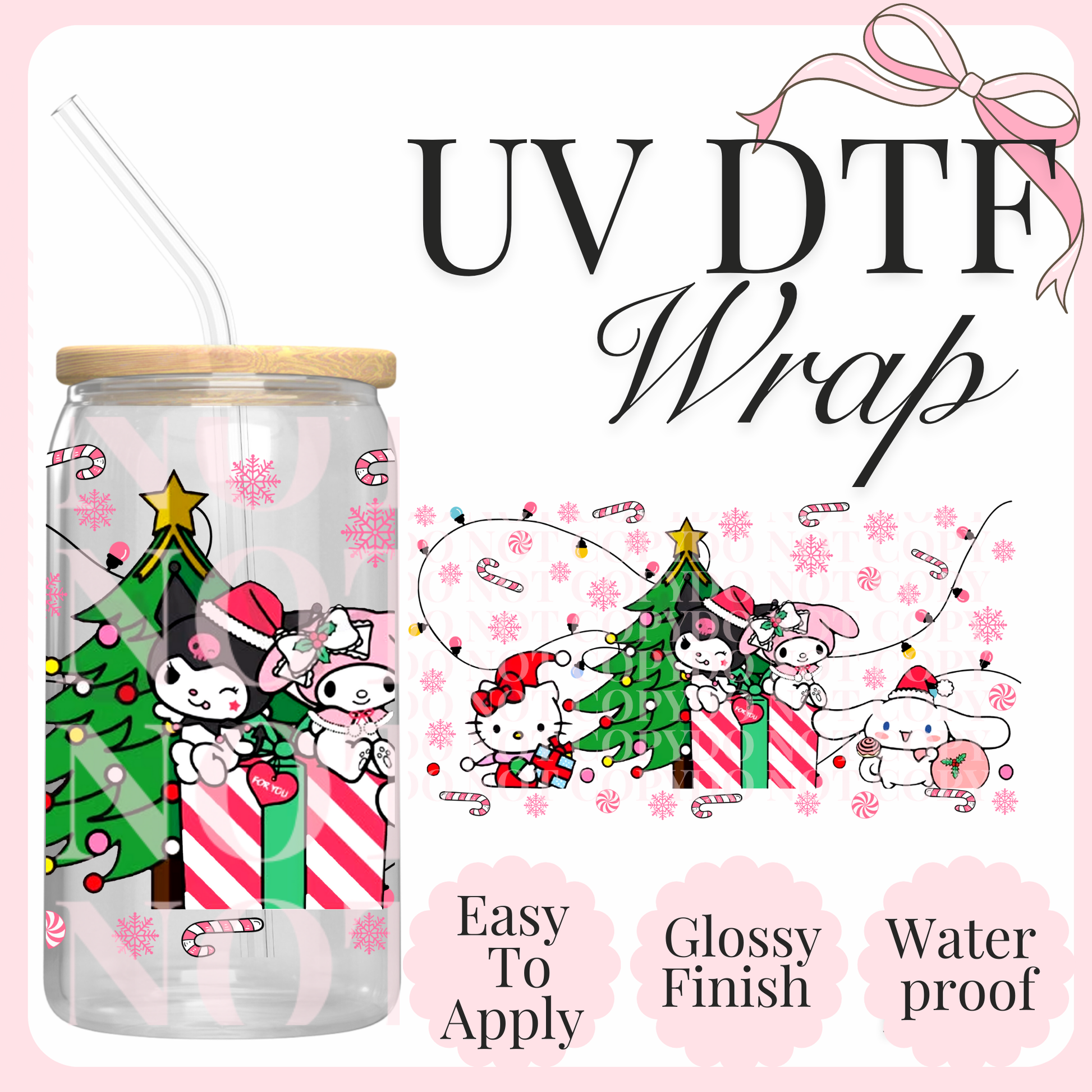 Measurements are 9.4 by 4.1” inches Introducing our latest innovation, the UV-DTF for 16 oz cups. This high-quality printing solution guarantees vibrant and eye-catching colors that are sure to impress. The best part? No heat is needed during the application process, making it a hassle-free and efficient option. Our UV-DTF is not only permanent and waterproof, but it is also incredibly easy to apply. Whether you're looking to start your own business or simply add a unique touch to your existing products, our UV-DTF is perfect for you. Wholesale options are available, making it an ideal choice for bulk orders. Detailed instructions are provided to ensure a seamless application process. However, please note that we are not responsible for any misuse of the product. If you have any questions or need assistance with the application, please don't hesitate to reach out to our dedicated support team. All sales are final, so make sure to make the most of this incredible offering today!