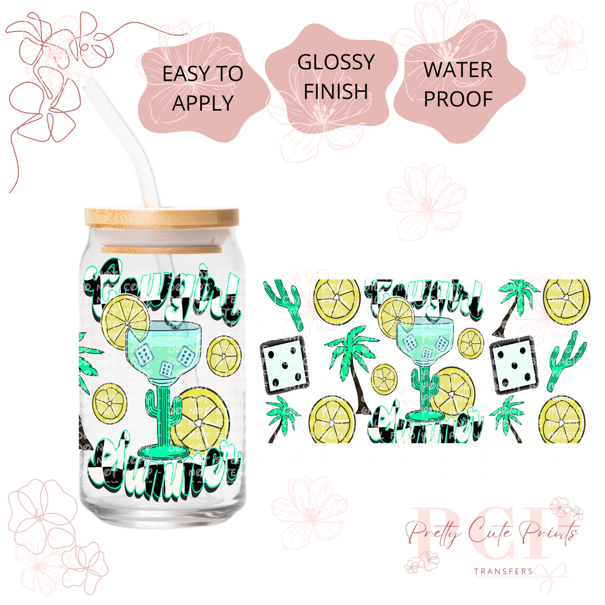Measurements are 9.5 by 4.25” inches Introducing our latest innovation, the UV-DTF for 16 oz cups. This high-quality printing solution guarantees vibrant and eye-catching colors that are sure to impress. The best part? No heat is needed during the application process, making it a hassle-free and efficient option. Our UV-DTF is not only permanent and waterproof, but it is also incredibly easy to apply. Whether you're looking to start your own business or simply add a unique touch to your existing products, our UV-DTF is perfect for you. Wholesale options are available, making it an ideal choice for bulk orders. Detailed instructions are provided to ensure a seamless application process. However, please note that we are not responsible for any misuse of the product. If you have any questions or need assistance with the application, please don't hesitate to reach out to our dedicated support team. All sales are final, so make sure to make the most of this incredible offering today!