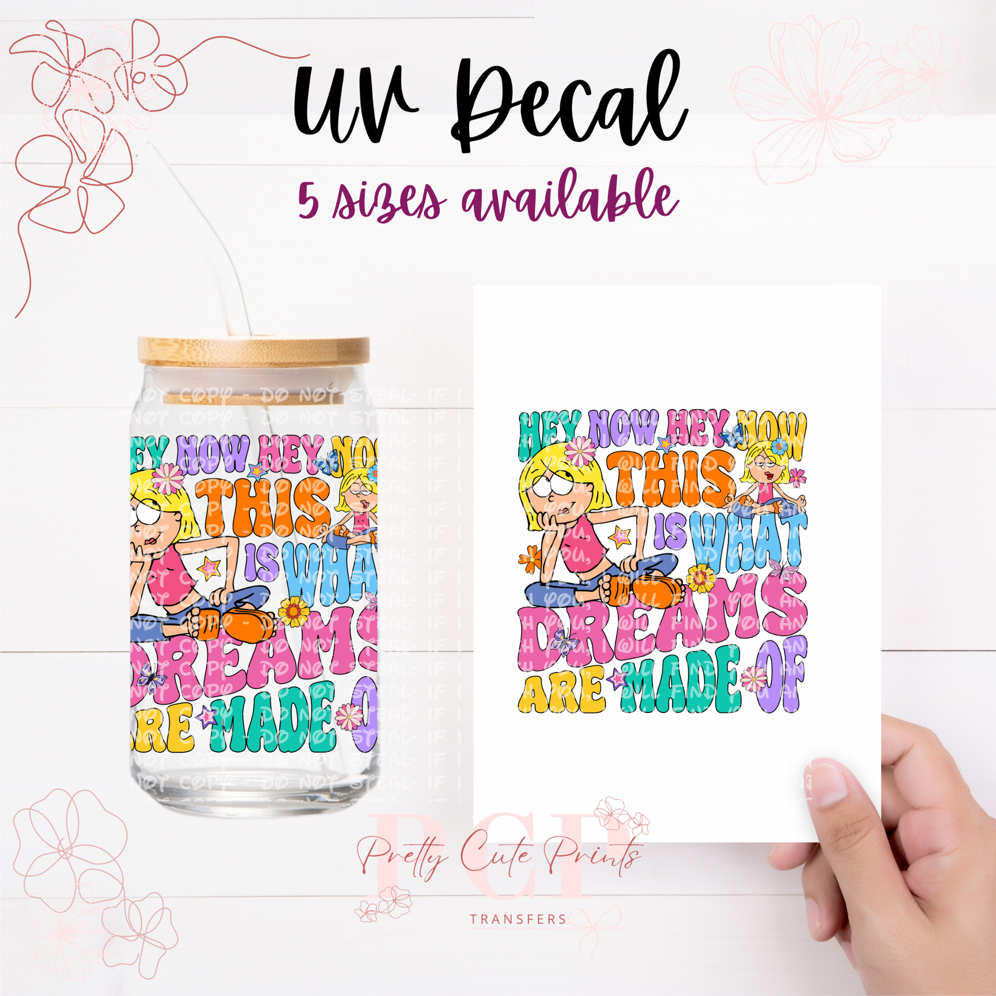 Introducing our latest innovation, the UV-DTF for 16 oz cups. This high-quality printing solution guarantees vibrant and eye-catching colors that are sure to impress. The best part? No heat is needed during the application process, making it a hassle-free and efficient option. Our UV-DTF is not only permanent and waterproof, but it is also incredibly easy to apply. Whether you're looking to start your own business or simply add a unique touch to your existing products, our UV-DTF is perfect for you. Wholesale options are available, making it an ideal choice for bulk orders. Detailed instructions are provided to ensure a seamless application process. However, please note that we are not responsible for any misuse of the product. If you have any questions or need assistance with the application, please don't hesitate to reach out to our dedicated support team. All sales are final, so make sure to make the most of this incredible offering today!
