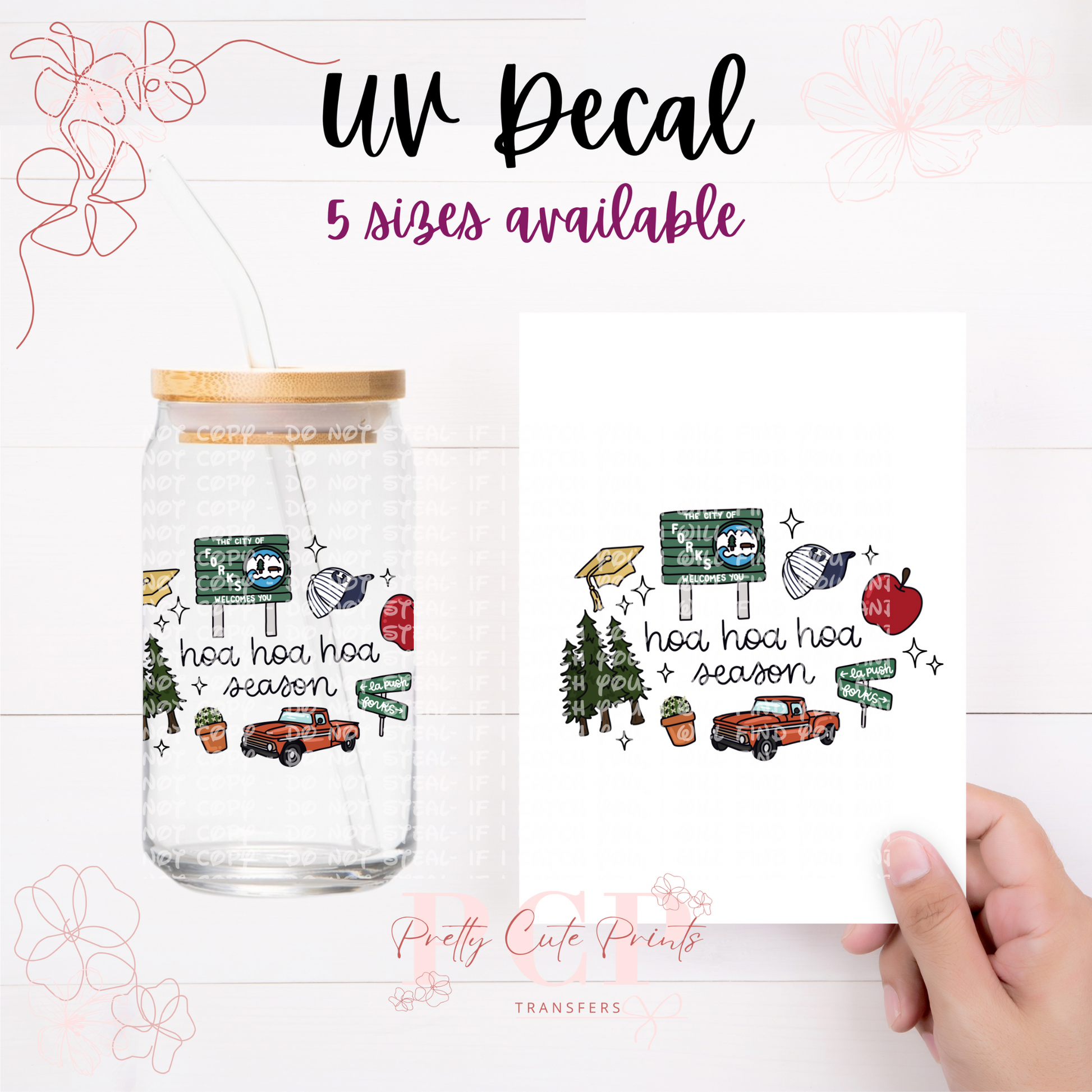 Our decals are available in five versatile sizes to suit any need: 2 inches, 3 inches, 4 inches, 5 inches, and 6 inches. From small personal accessories to larger decorative projects, our decals are designed to offer flexibility and style in every size.