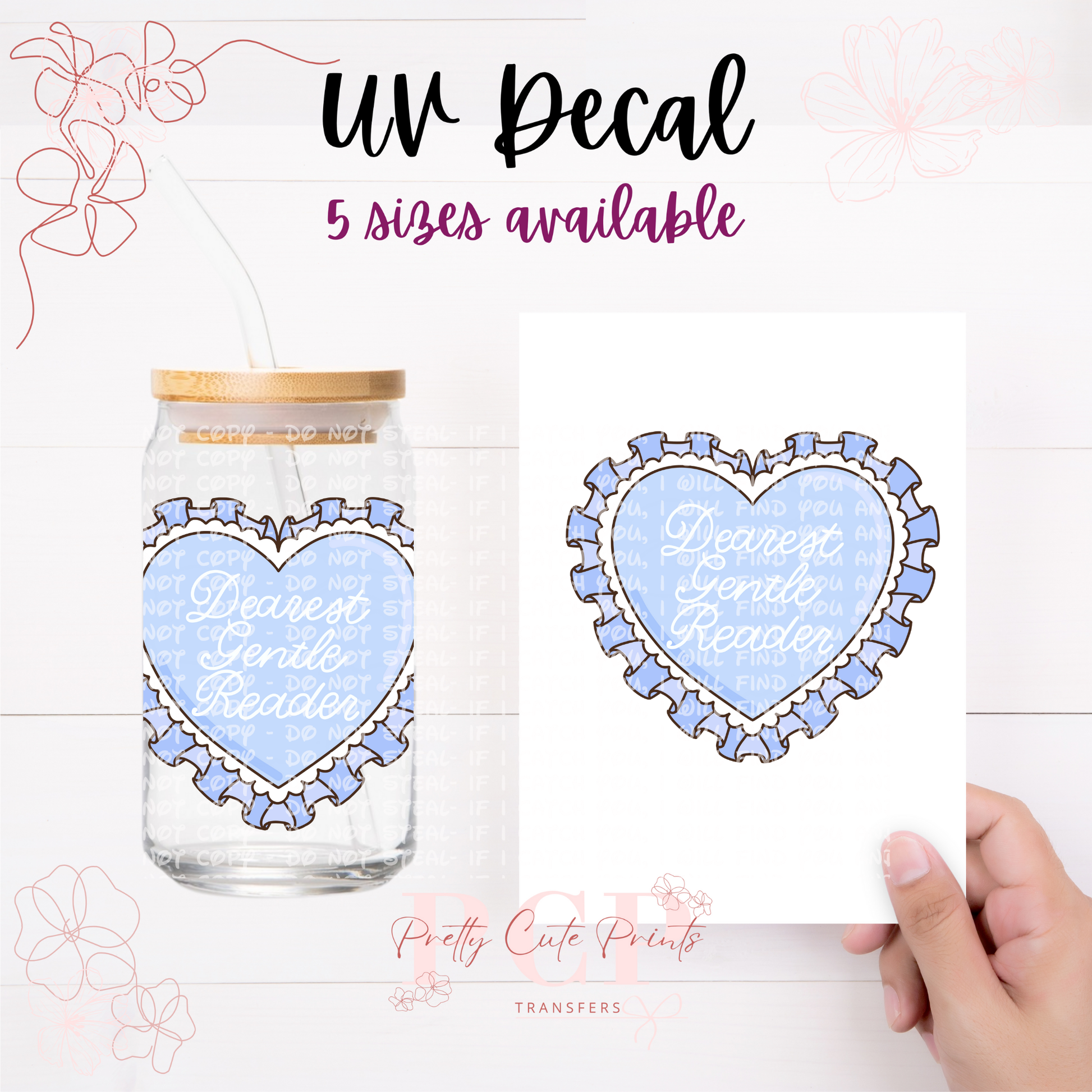 Introducing our latest innovation, the UV-DTF for 16 oz cups. This high-quality printing solution guarantees vibrant and eye-catching colors that are sure to impress. The best part? No heat is needed during the application process, making it a hassle-free and efficient option. Our UV-DTF is not only permanent and waterproof, but it is also incredibly easy to apply. Whether you're looking to start your own business or simply add a unique touch to your existing products, our UV-DTF is perfect for you. Wholesale options are available, making it an ideal choice for bulk orders. Detailed instructions are provided to ensure a seamless application process. However, please note that we are not responsible for any misuse of the product. If you have any questions or need assistance with the application, please don't hesitate to reach out to our dedicated support team. All sales are final, so make sure to make the most of this incredible offering today!